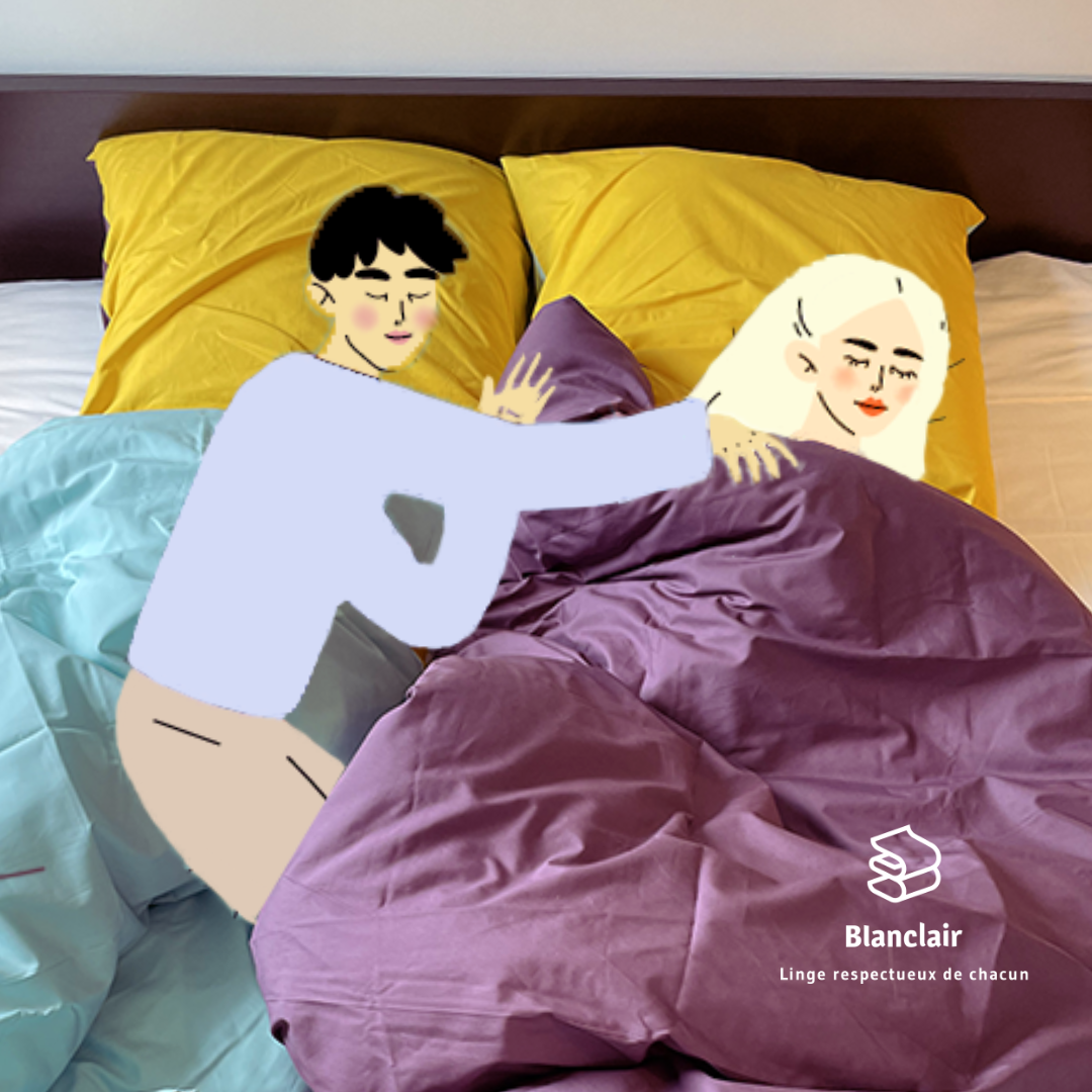 Ce problème - bien réel - se matérialise de plusieurs façons : les pieds trop froids qui se retrouvent collés contre le dos de son/sa conjointe, les débats sur la sortie de la couette d'hiver ou la couette d'été, un sujet qui s'enroule de manière inconsciente dans la couette deux places, laissant l'autre malheureusement esseulé mais surtout exposé. C'est pourquoi pour la saint Valentin, Blanclair a décidé de faire campagne sur les réseaux sociaux et de proposer une solution pragmatique, inspirée de nos voisins germaniques : utiliser deux couettes une place. En hiver comme en été, célébrez l’amour et mettez fin à la bataille des pieds gelés.