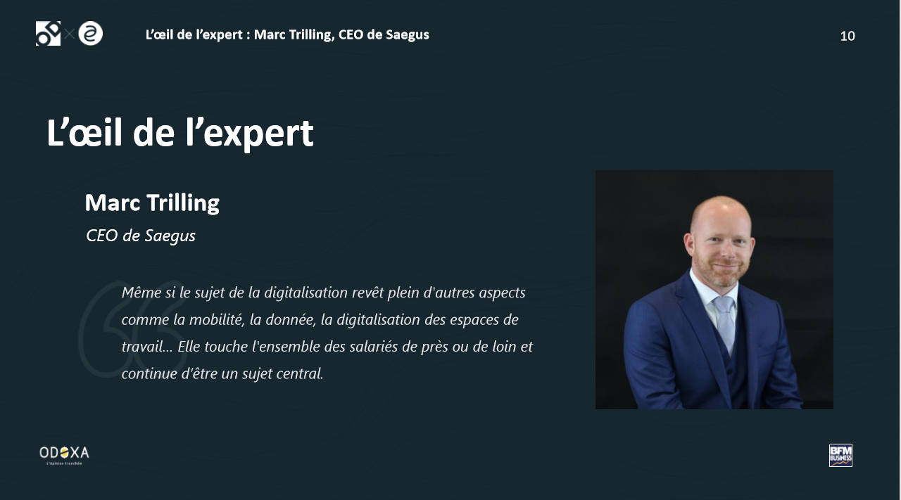 Cet Observatoire s’articule en plusieurs points. C’est d’abord un concept hybride : Saegus veut mettre au-devant de la scène des sujets qui leur tiennent à cœur dans le cadre des missions effectuées pour leurs clients dans leur transformation digitale tout en profitant de l'expertise d'Odoxa pour sonder les Français et plus particulièrement les salariés.